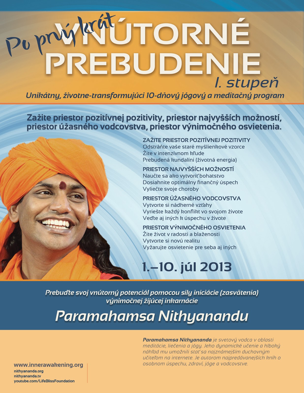 NOVÝ 10-DŇOVÝ PROGRAM: Inner Awakening (Vnútorné prebudenie) STUPEŇ 1 usporiadané Paramahamsa Nithyanandom (Swamijim) samotným...